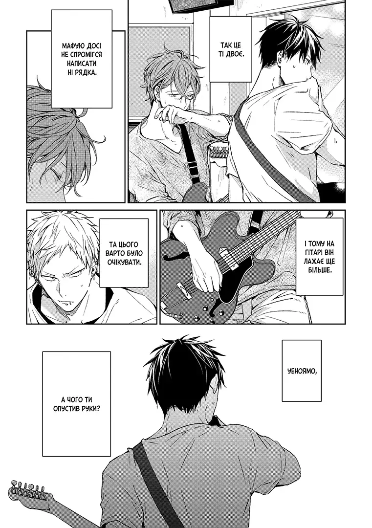 Ріцука місця собі не знаходить… Що більше обмірковує, то чіткіше розуміє: до вокаліста він має аж ніяк не дружні почуття. І от тепер музичний геній безбожно лажає на кожній репетиції, бо як тут зосередитися на струнах, грифах та акордах, коли серденько аж тьохкає?..
