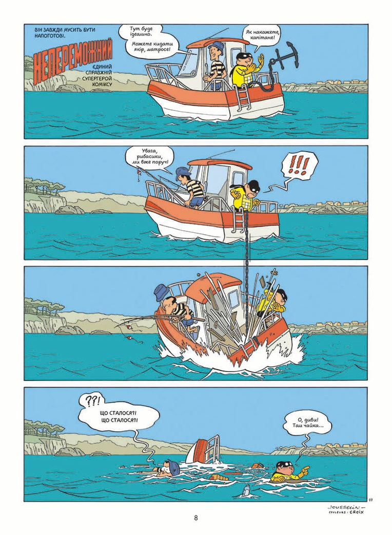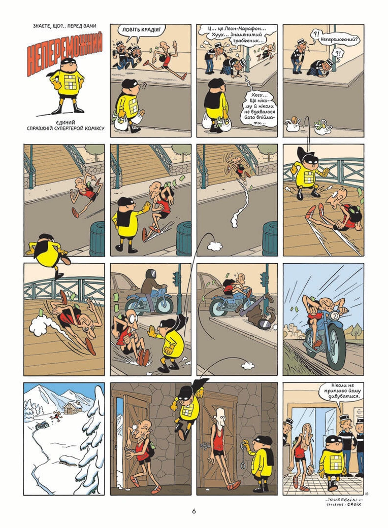 Паскаль Жусселен перетворив сітчасту структуру сторінок коміксу на поле для наративних експериментів, на ігровий простір, де персонажі мають повну свободу пересування. Його супергерой перестрибує з однієї клітинки на іншу, грає зі зміщеннями кадрів та переходами між сторінками.