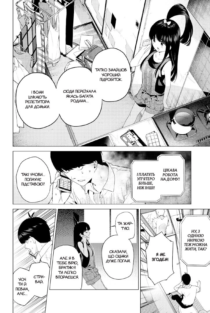 У другокурсника Футаро Уесуґі вельми скрутна фінансова ситуація, тож, коли він бачить пропозицію стати репетитором з хорошою оплатою, неабияк радіє. Але виявляється, що учні — його однолітки, одна з них — однокласниця. А ще — близнята, якщо точніше, то п’ятеро близнючок. Усі вони чудові дівчата, але люблять порушувати правила і ненавидять вчитися настільки, що перебувають на межі виключення.