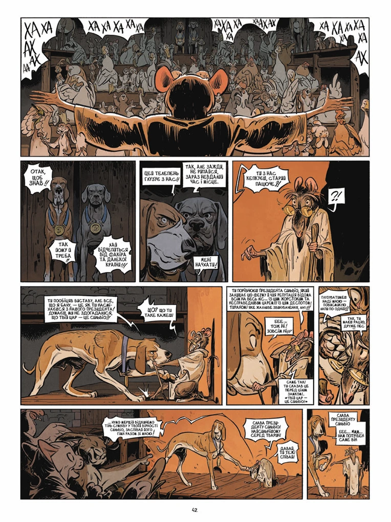 Елегантний та глибокий мальопис, який комусь нагадає «Колгосп тварин» Джорджа Орвелла, а комусь сторінки недавньої історії, перенесе у світ, де боротьба можлива, було б кому боротись…